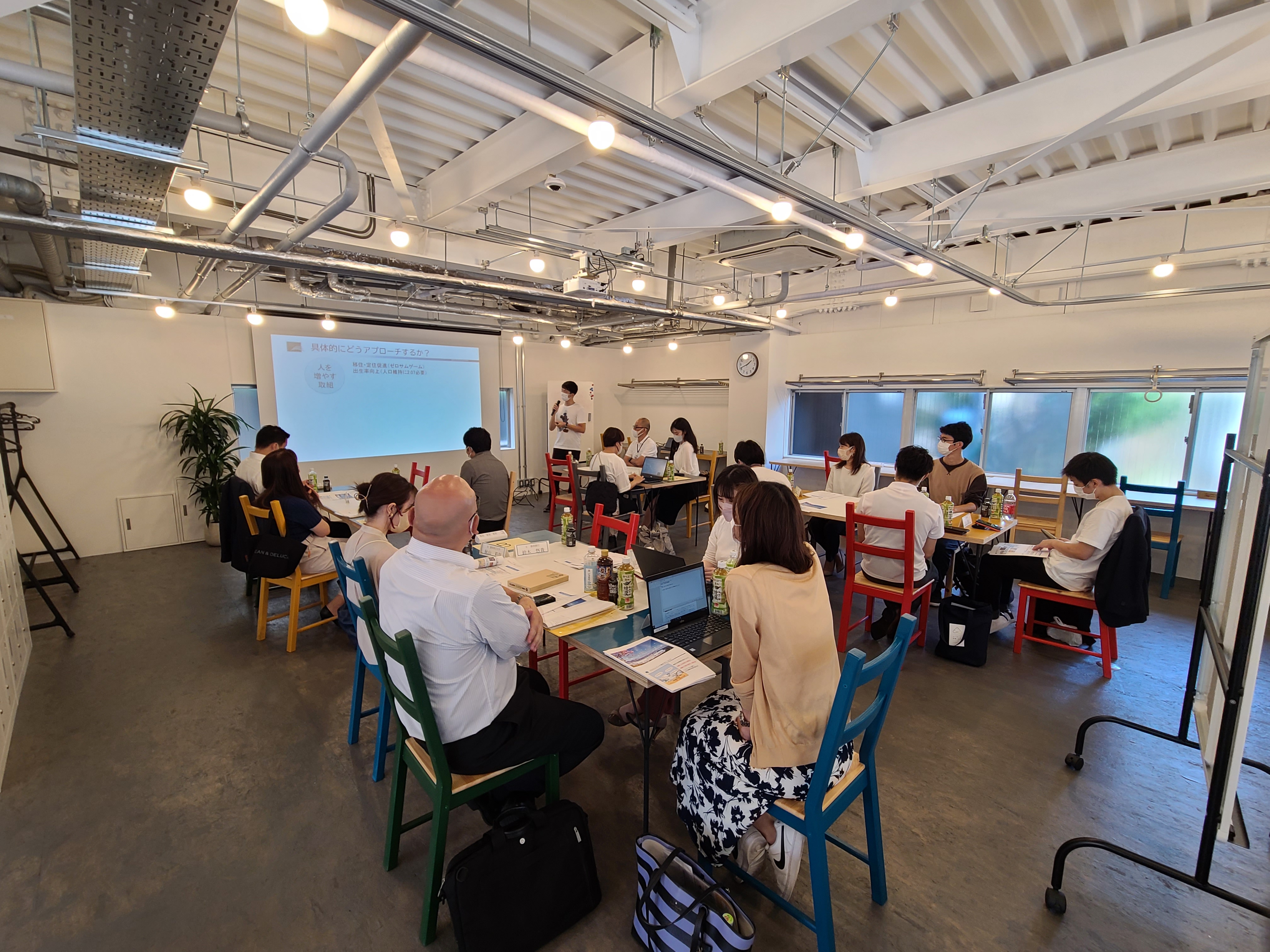 ワークショップ実施後は企業を中心とする組織の行動計画策定を行う定例会を開催します。メンバー間の協働と交流促進による地域におけるナナメの関係を構築し、学習コミュニティとして機能させることを目指します。(22年4月以降定期的に開催予定)