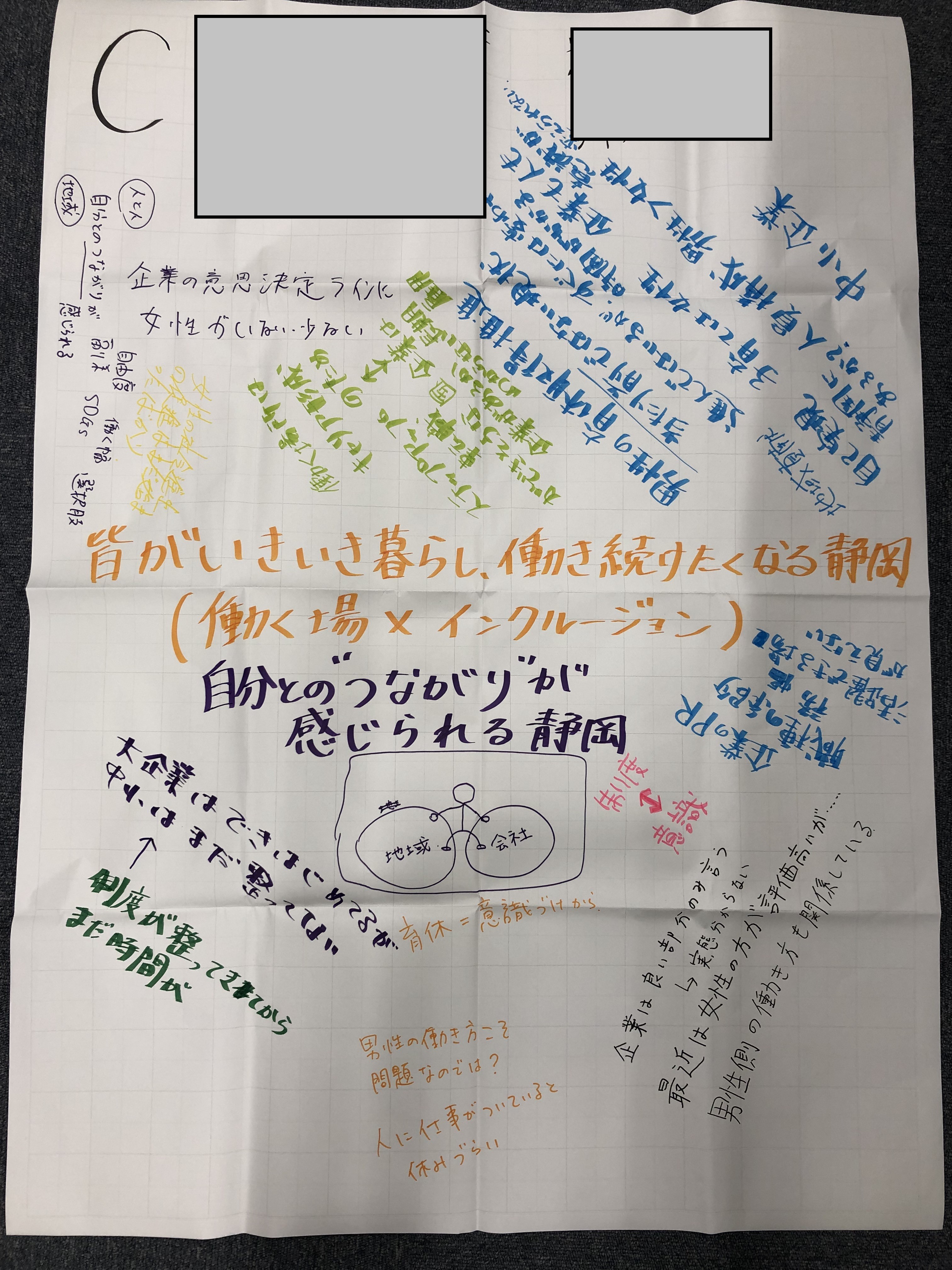 そこで今回はグループ単位で深い議論を重ねながら静岡でインクルージョンに関する課題が発生する構造と課題の真因を検討しました。